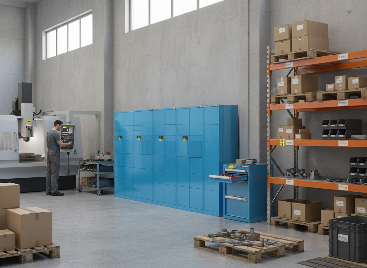 Součástí systému jsou také chytré výdejní skříně POLAK se zásuvkami a boxy. Přístup je řízen aplikací – uživatel otevře pouze ty části, ke kterým má oprávnění. Tím se zajišťuje bezpečné uložení nářadí a kontrolovaný výdej materiálu. Výdejní skříně lze kombinovat s lokalizačními jednotkami a vytvořit tak komplexní systém.